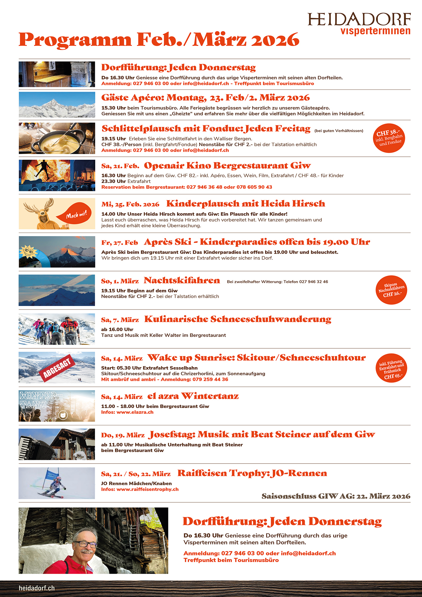 Liebe GästeWir haben im Feb/März 2026 ein abwechslungsreiches Programm für Sie.